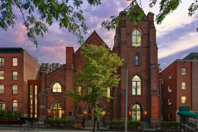 The St. Vincent de Paul campus, a Roman Catholic rectory, school, and church, was not a landmarked site, but developer Heritage chose to convert and re-develop the existing structure despite higher risk and cost in order to preserve the appearance of the building out of the desire to create a truly unique development. The building is now a 104 unit interconnected rental complex, with the first phase transforming the brick rectory into 10 apartments, the second phase consisting of 39 units housed within the 19th-century neo-Gothic Church with several floors constructed in the soaring 70-foot nave. The third phase added two floors and 55 units to the school, which dates from the 1950s.