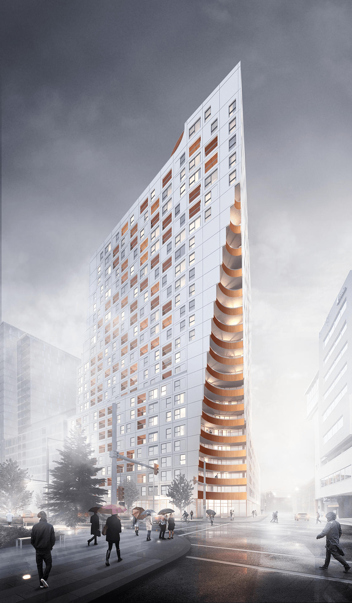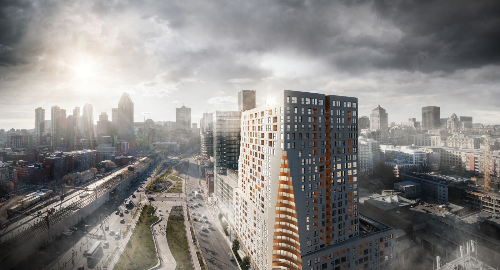 Consisting of 264 apartments, 171 condominiums ranging from studio’s to 3 bedrooms, the 26-storey tower will integrate and preserve two heritage buildings located on the site in order to further the connection between the urban and natural environments.