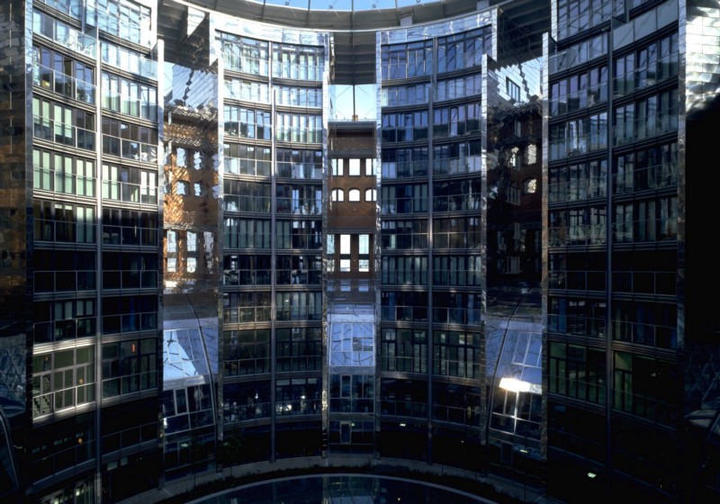 For his design of Gasometer A, Jean Nouvel systematically designed ‘Austria’s biggest sundial’ by lining the façade of the star-shaped housing structure with polished metal, which reflects myriad light effects at different times of day. Coop Himmelblau perforated the façade of Gasometer B creating an external field of tension with a slightly projecting add-on that opens a wide vista on the nearby recreational zones. While Manfred Wehdorn designed a ‘house inside a house’ and divided the inner structure of Gasometer C, into 18 segments of a circle. His answer to the circular shape imposed on the design is an inner courtyard shaped like a truncated cone tapering downwards.Finally, in Gasometer D, Wilhelm Holzbauer breaks up the inner orientation of the old volume by having the loggias and terraces of the flats facing the open intermediate spaces.