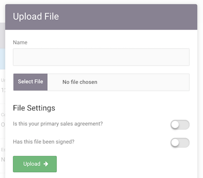 File uploads have moved off of the contract edit page and are now contained within the files section. This makes uploading faster and gives you more options on upload. Add a name, mark your primary sales agreement and select if the file has been signed or not, all from the new upload page.