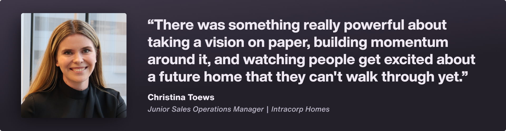 From a young age, Christina Toews had always shown a fascination with real estate, from leading her family’s house hunting efforts by searching through MLS listings and reaching out to agents on her own. Fast forward to today, and Christina works in Sales Operations Management at Intracorp Homes. We sat down with Christina to discuss her transition into new home development, the impact of strong mentorship within this industry, and the need to always be curious and ‘jump into’ opportunities.