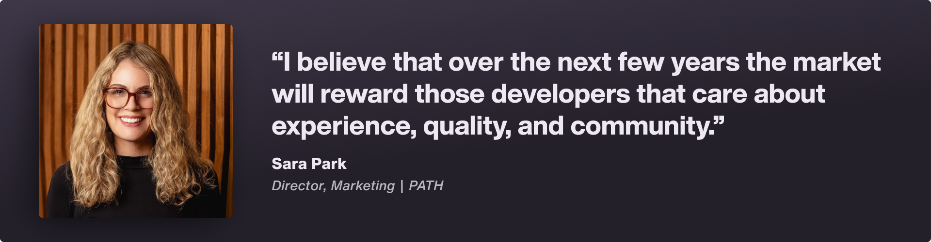 One, I'm optimistic that I'm seeing a lot more strong women in development. I think that's super encouraging. Two, we’ve started to see some of the best work come out of a really tough market. It's not easy or simple to sell homes in this market. It forces all of us to ‘level up’, so to speak, and so I've seen a lot of my peers doing really awesome, creative work. We've experimented at PATH with different marketing tactics this year, some of which have failed miserably but some have been quite successful.