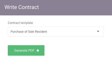 Send us your contract PDFs and we’ll create a template that maps the input fields to Spark. When you’re ready to write a contract, click Write in the top right of a contract page. Select your contract template and click Generate PDF. A new contract PDF will appear, complete with the information from Spark. This will save your team huge amounts of time, as you no longer have to manually enter data you have already collected!