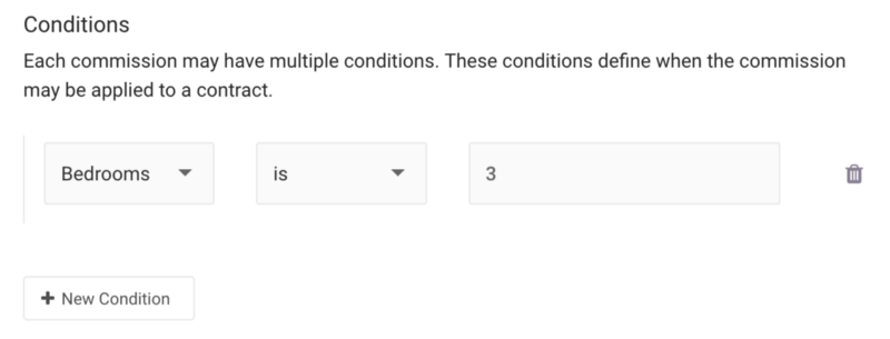 You can now apply commissions to a contract when it meets specific conditions. You can base these conditions on an agents tier, the units bedroom count, or the units area. To add conditions to a commission click edit on the commission you want to update under Settings → Conveyancing → External Commissions.