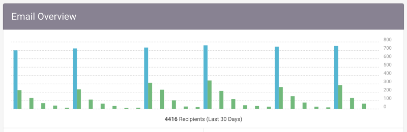 The email overview graph used to only show recipients (the blue bars). You can now see how many people open your emails each day as well (the green bars).