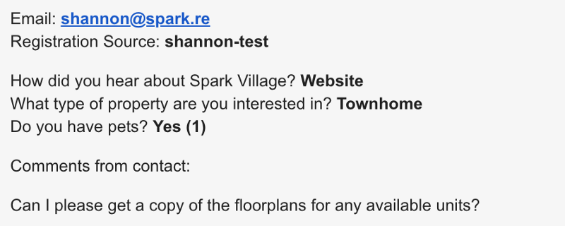 Now, if you include the “Comments” section in your form, any comments the contact made while registering will also be included in that notification email. This makes it simple for agents to note additional comments from their inbox. These comments will continue to be recorded as a Note on the contact’s profile.