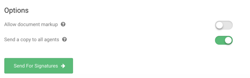 When sending out contract files for signing, you now have the option to CC agents. This means that once the signing has been completed, a copy of the signed documents will be sent to each of the agents assigned to the contract (at the time of signature request). CC’d agents won’t be required to sign the document.