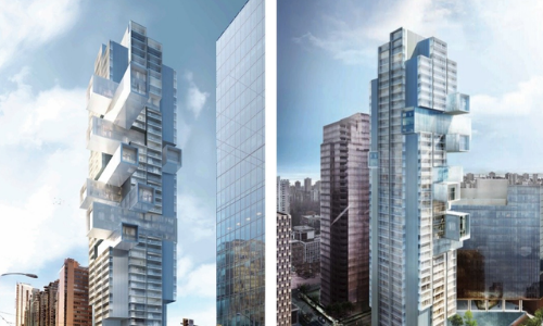 Scheeren’s third tower is proposed for 1500 West Georgia Street, dubbed the ‘Jenga tower’. It is also a stacked cube design, which will feature a series of offset apartments that assemble the tower and protrude on one side. The development will feature 48 floors and 235 apartments with multiple terraces that create a sense of connectivity between the indoor and outdoor environment, introducing horizontal living in a slender environment