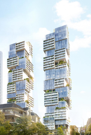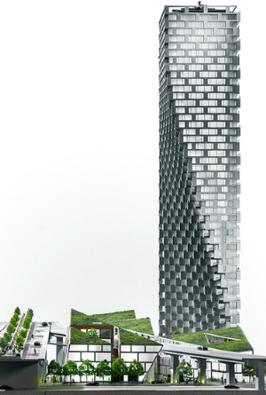 Best known for designing the Burj Al Arab in Dubai, the sailboat-shaped luxury hotel, WKK Architects has proposed a new 585 ft. tower which will include 485 residential units and consists of two gently undulating bands with a column of vertical forest down the centre.