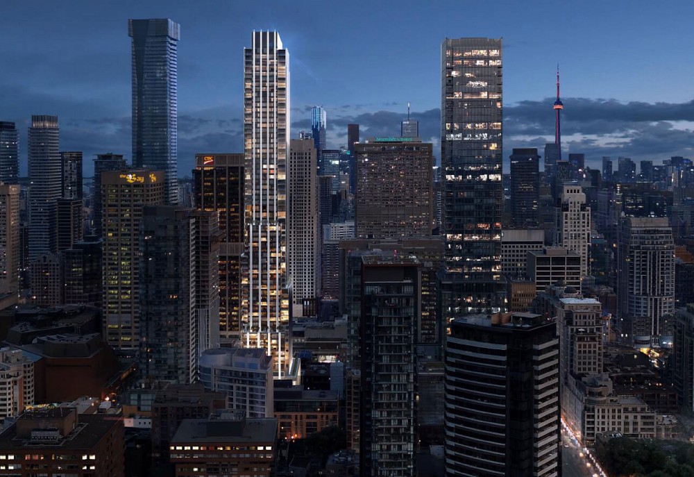 Inspired by the towers of Manhattan, 11 Yorkville (11YV) rises 62-storeys above Toronto’s Yorkville neighbourhood. With 600 residences ranging from 342 to 1517 sq.ft., 11YV features an array of high-end amenities, including an indoor-outdoor infinity pool, hot tub surrounded by fireplaces and black marble, fitness studio, men’s and women’s spa with hammam steam rooms, a theatre, business centre, kids recreation centre, pet spa and outdoor lounge area with bbq.