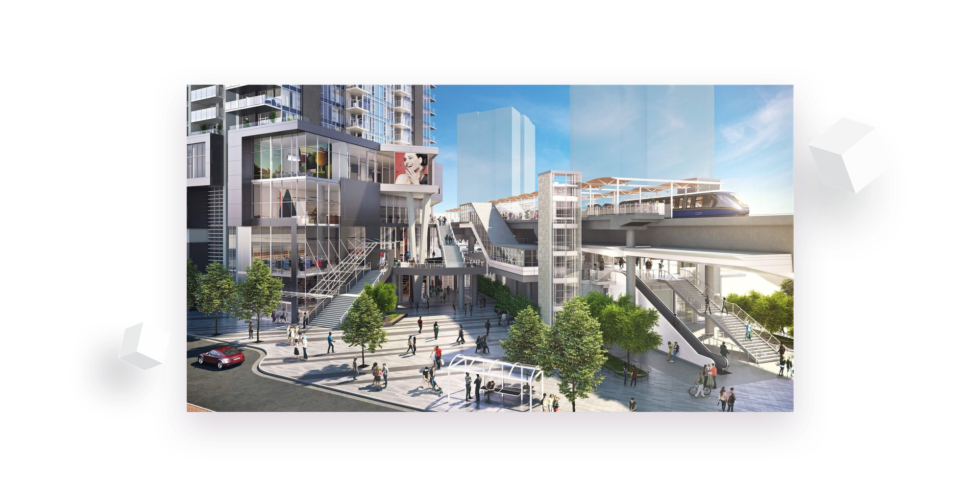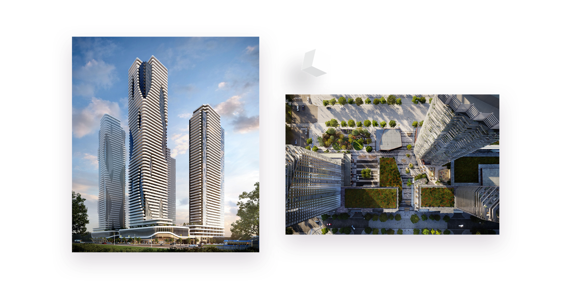 An upcoming phase of the SmartVMC master plan, Park Place is a two tower development coming to the heart of Vaughan. The development will create more than 1,100 new homes and 10,000 sq ft. of retail space. Park Place joins a mixed-use community that spans more than 100 acres and will contribute to the 45,000 residents estimated to live in SmartVMC.