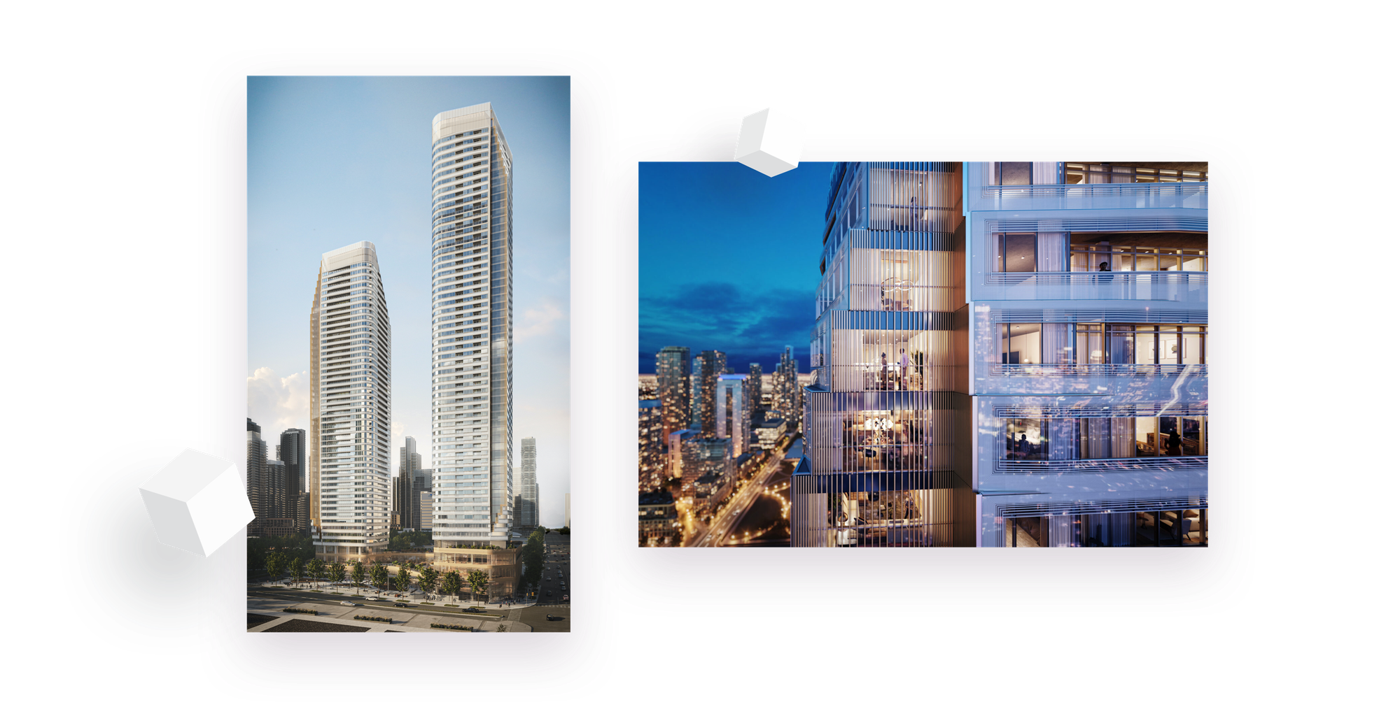 Bravo is the third phase of the Vaughan-based multi-tower master plan community, Festival South VMC, which has been heralded as Canada’s Best selling community. A joint venture between Menkes and QuadReal, the Bravo phase comprises 3 towers ranging 47 to 62 storeys high, for a total of 2000 units. Residents will enjoy world-class amenities, including a games lounge, fitness zone and recording studio.